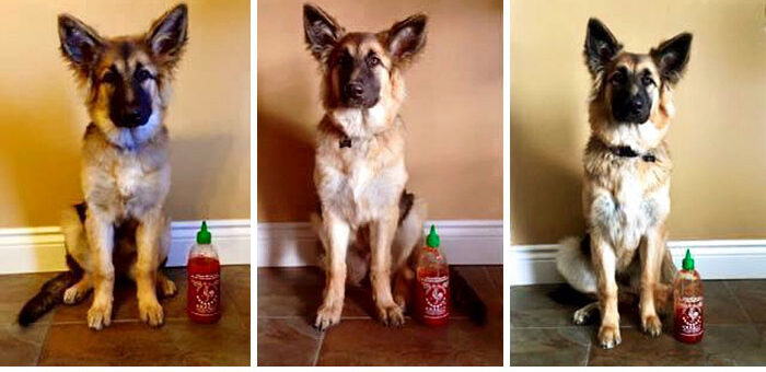 Este dono tirou uma foto ao seu Pastor Alemão durante 2 anos e conseguiu uma sequência interessante do seu cão a crescer.