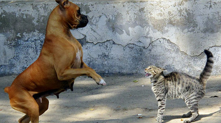 Quem tem patudos em casa sabe que é verdade. Muitas vezes, a relação entre cães e gatos vem provar que o tamanho pouco importa! Quantas vezes não vemos um imponente cão a ser intimidado, em segundos, por um bebé felino?