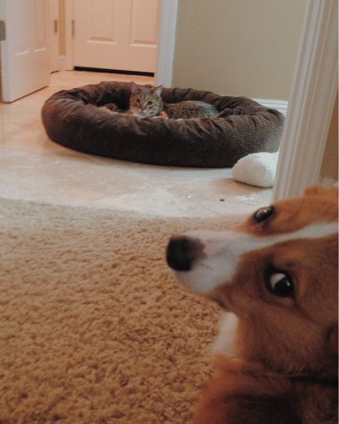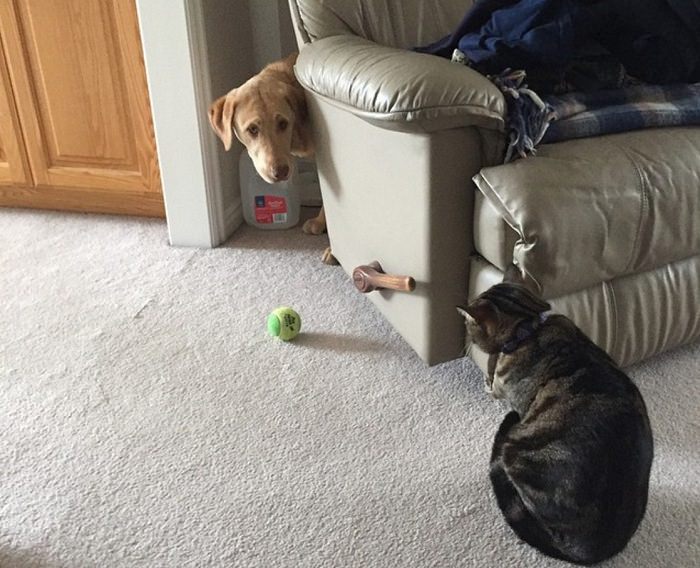 13 Fotos hilariantes de cães aterrorizados por gatinhos