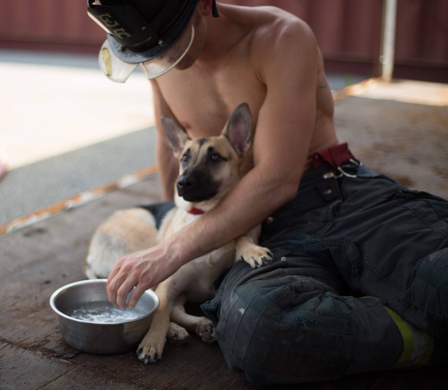 Bombeiro faz sessão fotográfica com cadela pastor alemão e acaba por adotá-la