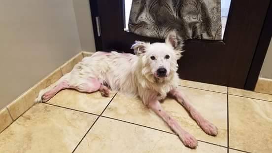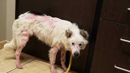 Infelizmente, a doença não parava de evoluir e o patudo precisava de tratamento urgente (como pode comprovar nas imagens). As dores eram tantas que ninguém lhe podia, sequer, tocar. Em vários locais do corpo, o seu pelo tinha desaparecido e a pele estava em carne viva.