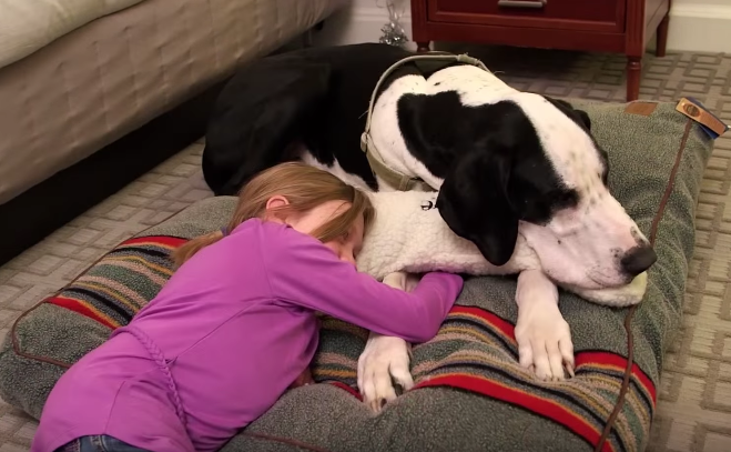 No entanto, depois de conhecer George, um cão da raça Great Dane, tudo viria a mudar! O patudo, treinado em Massachusetts, rapidamente sentiu uma forte ligação à menina e quis ajudá-la.