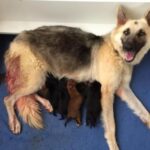 Mamã Pastor Alemão encontrada debaixo de escombros com os seus filhotes