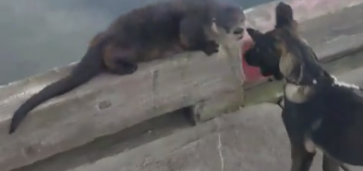 Alguma vez viu um felino transformado num verdadeiro mestre do Kung Fu? É exatamente o que pode ver no vídeo que se segue. O cão ainda tenta aproximar o focinho – talvez a tentar brincar com o companheiro – mas nada feito.