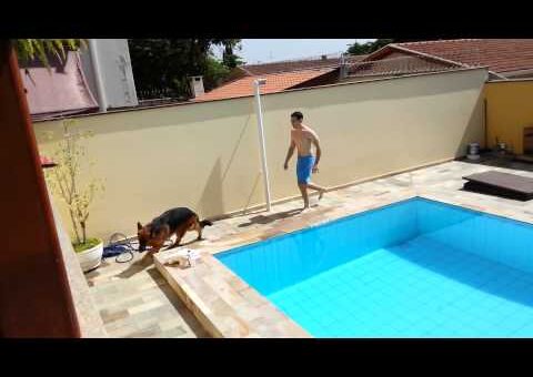 Todos sabemos que há Pastores Alemães que amam água….mas…outros nem tanto! Esse Pastor Alemão do vídeo que lhe apresentamos faz...