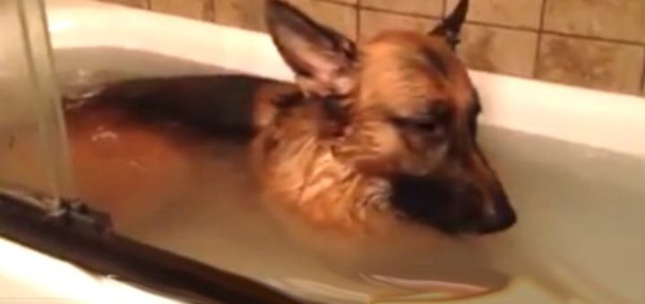 Não são só os seres humanos que adoram tomar banho relaxante! Pelos visto este Pastor Alemão também é fã!! Se...
