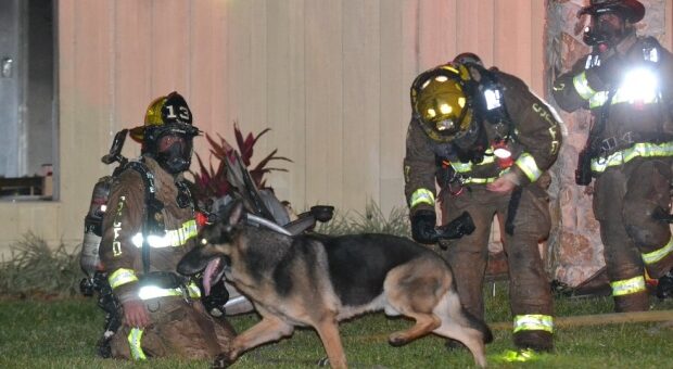 As autoridades no centro da Flórida relatam que um Pastor Alemão ajudou os bombeiros a localizar os duas crianças num...