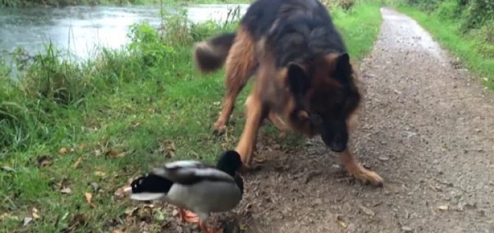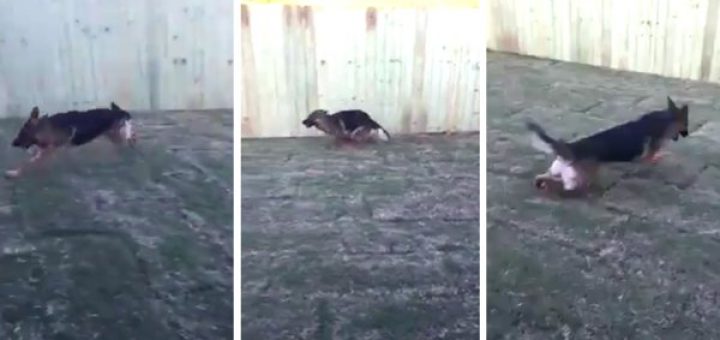 Cãozinho não se deixa intimidar por pastor alemão três vezes maior