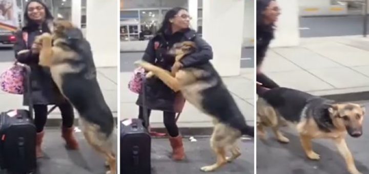 Pastor Alemão recebe com euforia a dona no aeroporto